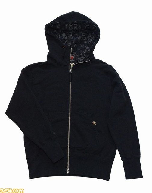 KOG1POIN-Tの流れを汲む、シンプルイズベストなジップパーカー。ポケット口にはリンク、バックにはハートの器のクロスステッチ、フードの中には敵キャラクターの連続柄を密かにプリント。控えめなプリントと細かいクロスステッチがアクセントになった、大人のフルジップパーカー。