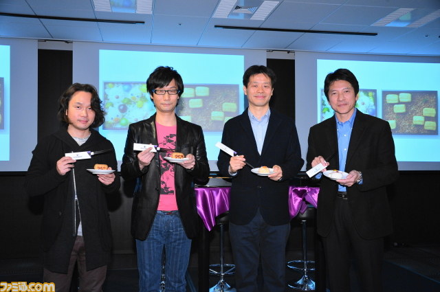 開会に先立ち、ソニー・コンピュータエンタテインメントジャパン プレジデントの河野弘氏が登壇。プレイステーションは1994年の誕生以来、18年の歴史があるが、プレイステーションを支えてきた『メタルギア』シリーズと『ファイナルファンタジー』シリーズは、それ以上に長い25周年であることをあらためて紹介。そんな25周年の両シリーズをお祝いしようと、ソニー・コンピュータエンタテインメントジャパンのスタッフで話が立ち上がり、「みんなで盛り上がれるお祝いにしたい」という意向で、キャラ弁プロジェクトがスタートした、と今回の経緯を説明した。制作過程では、河野プレジデントはノータッチだったようで、「プレコミュ(プレイステーションのコミュニティサイト)でリポートされる制作過程を見ていると、木工職人さんや漆職人さんが登場し、さらにはスタッフが山奥で玉子を探している。忙しい年末の最中に何をやっているのかと思いました(笑)」と苦笑しつつも、「スタッフが全国をいろいろ飛び回って作ったキャラ弁です!」と熱意を強調。当日初めて実物を見たという河野プレジデントだが、そのデキに自信アリ、といった表情で挨拶を終えた。
