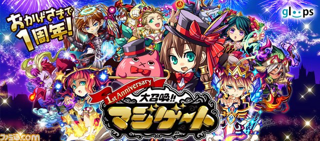 2013年2月17日、gloopsがMobageで運営している『大召喚!!マジゲート』が配信開始から1周年を迎えた。同社はこれを記念して、ふたつのゲーム内イベントを実施する。どちらも、ユーザーの皆さんに感謝を込めて実施するというだけあって、とーってもおトクなイベント。ぜったいにお見逃しなく。