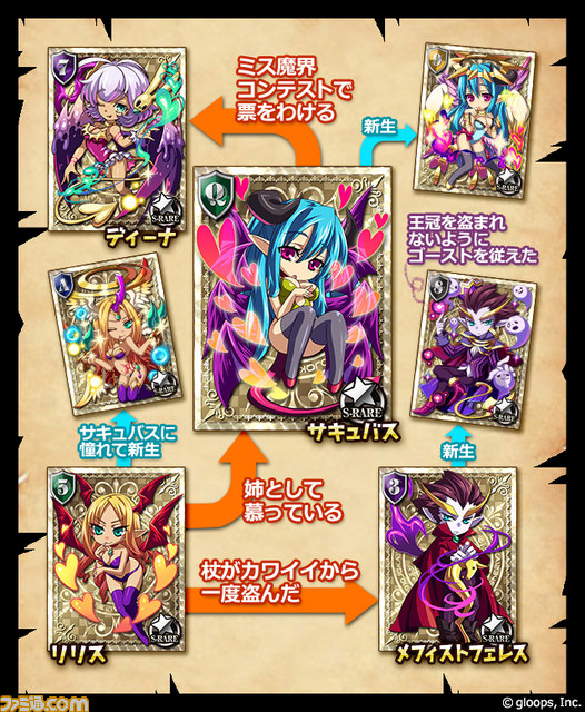ファミ通ドットコムのために用意された、人気モンスター、サキュバスとルシフェルの相関図を掲載しよう。モンスターとはいえ、わりと人間くさいバックストーリーがあるようだ。