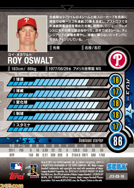 セガは、全国のアミューズメント施設などで稼動中の野球対戦ゲーム『SEGA CARD-GEN MLB 2012』をプレイしたCARD-GEN.NET会員(入会費・年会費無料)の中から、抽選で1000名に“EX カード”が当たる“CARD-GEN.NET会員限定!! EX カードプレゼントキャンペーン”を実施する。本キャンペーンでは、新規カード5枚に加えて、現在は入手困難な2012年の公式店舗大会の参加賞カード4種が期間限定で復活。期間中の試合数に応じて応募できるコースが変化するので注意してほしい。