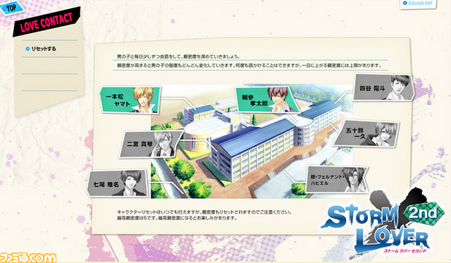 『STORM LOVER(ストームラバー) 2nd』のサイト内にある“ラブコンタクト”へアクセス! 気になる彼に話しかけ、親密度をあげることで、ハートを貯めることができる。ハートが貯まると……彼の表情やセリフに変化が! さらにボイスまで聴くことができる。