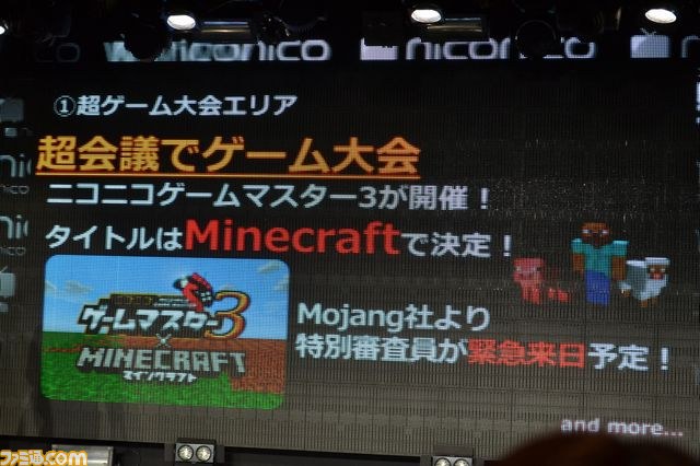 …多くのゲームファンやゲームが好きなニコニコユーザーにより一層ゲームを楽しんでもらい、ネットならではの多様なゲームの遊び方をピックアップしてゲームカテゴリーユーザーが活躍する場を提供していくイベント「ニコニコゲームマスター」の第3回を超会議2で開催。今回は、世界中で愛されているサンドボックスゲーム「Minecraft」とコラボしたゲーム大会を行います。開発会社のMojang 社から特別審査員も来日します。