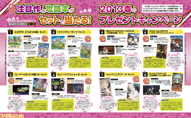 いま話題14タイトルのゲームソフトとその攻略本をセットにして、抽選で合計70名に当たるプレゼントキャンペーン。4号連続企画なので、乗り遅れないように!