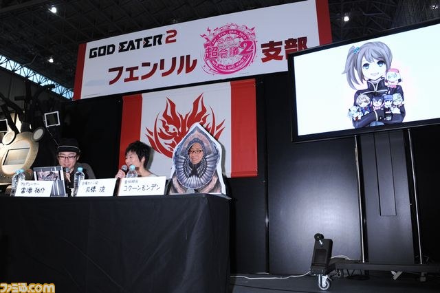 幕張メッセで開催中の“ニコニコ超会議2”。バンダイナムコゲームスは、PSP・プレイステーション Vita用ソフト『GOD EATER 2』のブースを出展した。各種展示物やスタッフの即席直筆イラストプレゼントコーナーのほかに、ブース内のステージで2部構成のトークイベントが開催された。
