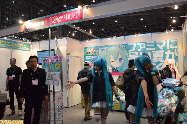 初音ミクとのコラボレーションに力を入れているファミリーマートブース。初音ミク(ファミリーマート制服バージョン)のコンパニオンが特製ICカードステッカーを配布しているほか、これまでのコラボレーションで作られたオリジナルグッズの展示が行われている。また、ついに新プロジェクトが始まるという発表も。今度はTSUTAYAも関係してくるようだが……?