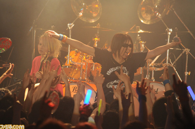 ふたりが一度ステージから下がると、ステージ上に残ったバンドメンバーが演奏やパフォーマンスで会場を盛り上げる。そして衣装チェンジして登場したふたりが披露するのは『小指のパラドックス』。小指を立てて振り上げるパフォーマンスで会場との一体感を感じると「ライブ最高!」とMeguもシャウト。さらにここでZweiから重大発表があるとのことでMeguからふたつ発表が。ひとつ目は2013年7月にシングルが発売されることが決定したということと、同シングルに収録される楽曲『Heading For Tomorrow』が『怒首領蜂 最大往生 完』のエンディング曲としてタイアップが決定したという内容。そしてもうひとつは、2013年8月に開催される“アニメロサマーライブ2013 -FLAG NINE-”への出演が決まったというもの。会場からもアツい声援が響き、この発表に全員で喜びを表した。そして、ここでZweiおなじみの「ワッショイ!」コールへ。「ワンマンライブ、そして『Re:Set』発売、そして今日はみんな楽しんでいってね! ワッショイ!」とAyumuが声をかけると、会場全体で「ワッショイ!」コールを上げ、ボルテージを上げていく。さらに、今回はメロディーつきのコールをして発散しようと思っているというAyumuの提案によって、コールを行うことに。ファンとのコール&レスポンスでAyumuのテンションもどんどん上がっていくなか、『PrettyQueen』、『Movie Star』とまくし立てる。