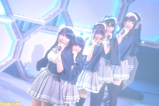 ここからはセレクトコーナーということで、まずは、アリア、エミュウ、ミク、ルイズによる『Triangle Wave』へ。このワンマンライブのために特別に用意したという衣装を身につけた4人が華麗なダンスとともに歌を披露すると会場も沸く。続いてメンバー全員での『教育的指導!』から、アヤミ、マホ、レイナ、レイミーの4人による『遙かなる時空の旅人』、コヒメ、ユカフィン、ローラの3人による『TANTEI☆ラプソディ』とノンストップで披露されると、会場の先輩たちのテンションもさらに上がり、大きな盛り上がりを見せた。