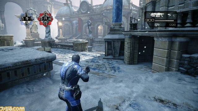 “機密情報”と密接な関係がある新要素がスコアシステムだ。敵を倒したり、ヘッドショットや処刑といった特殊なトドメで敵を倒すと、スコアゲージが上昇。セクションクリアー時に、ゲージの量に応じてスターを獲得できるという仕組みだ。“機密情報”は基本的にバトルがきびしくなる内容だが、開示すればスコアを獲得しやすくなるというメリットが発生する。ちなみにスターを集めると、『ギアーズ オブ ウォー 3』のスピンオフミッションである“顛末”が解禁されたり、実績が解除されるといったメリットがある。