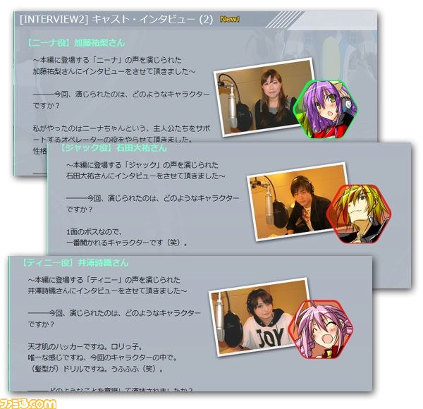 公式Webサイトにて、新たに加藤祐梨さん(ニーナ役)、石田大祐さん(ジャック役)、井澤詩織さん(ティニー役)のインタビューが公開された。