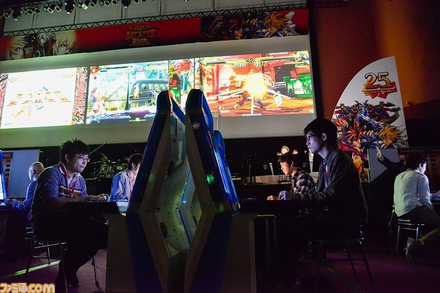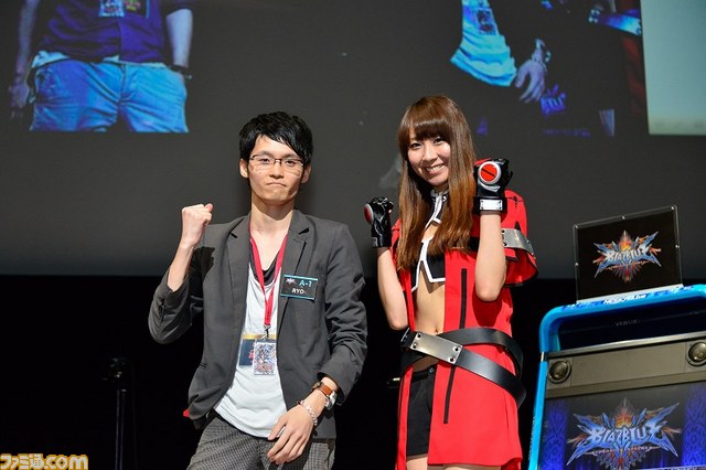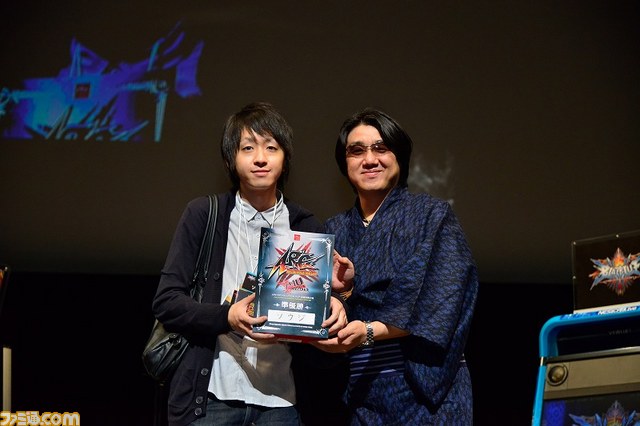 『ブレイブルー クロノファンタズマ』(以下、『BBCP』)部門でベスト8に進出したキャラクターはレリウス、ライチ、ヴァルケンハイン、ミュー、プラチナ、アズラエル、レイチェル、タオカカ。優勝予想2位の“ソウジ”選手(アラクネ)が初戦敗退という波乱があったものの、各キャラクターのエキスパート8名が勢ぞろいした形に。その中でも“RYO”選手は大会中唯一のレリウス使いで、公式の全国大会には初めての出場となる。『ブレイブルー』は、2012年3月に開催された公式全国大会“ぶるれぼ”終了後からやり込みを開始。約1年間の努力の成果を発揮し、初の大観衆を前にしても臆することなく素晴らしい結果を残した。そして、ベスト4に進出したプレイヤーは東京エリア代表が1名と、近畿エリア代表が3名。決勝大会前日に東京のゲームセンター“新宿スポーツランド本館”で行われた“前夜祭5on5大会”でも関西チームが優勝しており、関西勢の強さを示す結果になった。