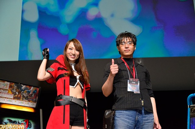 似合っていると評判だった“どぐら”選手のハザマコスプレ。壇上での試合勝利後にはハザマの勝ちポーズを真似たパフォーマンスをしたり、空き時間には来場者の写真撮影に応えて長時間ポーズをとり続けるなど、サービス精神旺盛な姿を見せていた。
