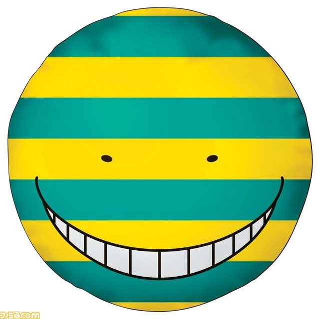 特徴的な“殺せんせー”の丸顔をデザインした、ビッグサイズのクッション。リバーシブルデザイン。