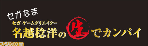 セガは、2013年7月22日(月)21時よりセガの情報をお届けするバラエティ番組“セガなま ~セガゲームクリエイター名越稔洋の生でカンパイ~”(以下“セガなま”)の第4回放送を、ニコニコ生放送にて配信する。