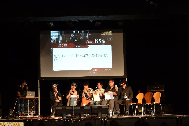 公開生放送&収録が終了し、つぎなるイベントは“アーマード・コア感謝祭2013~超難関ACクイズ選手権王座決定戦!”。これは、鍋島氏はじめ、『AC』開発スタッフから集められた、『AC』に関するさまざまな内容のクイズを出して、そのポイントを競うという内容で、クイズごとのポイントによって順位が決まる。当日会場で配られたQRコードで簡単に登録&参加でき、約400人弱の参加者が『AC』知識を競ったのだ。せっかくなので、当日の問題から3問ほど、出してみよう。※答えは、この記事の最後にあるぞ。