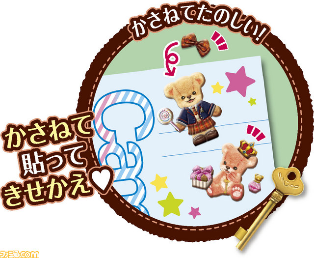 “カラフル クマ▼トモチャーム”は、ゲーム中のキャンディをなめるとボディカラーが変わるシーンを再現し、カラー別にかわいいキャンディチャームがついている。“ド レスアップ クマ♥トモチャーム”は、コック姿やパジャマ姿など、ゲーム中の着せ替えで登場するデザインを再現したキュートなチャーム。そして“クマ▼トモ ぷっくりシール”はプチ着せかえも楽しめるデザイン。小学生女児に人気の“クマ▼トモ”の世界観を生かした商品ラインアップとなっている。