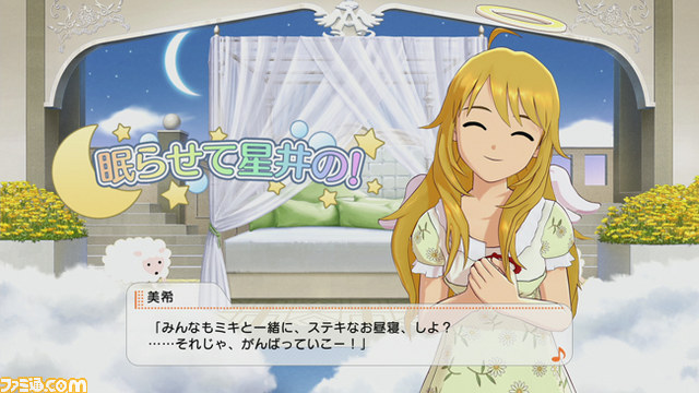 『アイドルマスター シャイニーTV』に収録される新曲『We Have A Dream』が、『アイマスチャンネル』をダウンロードすることで手に入る! もちろん新衣装となっており、13人全員がステージに立つという豪華な楽曲となっているのだ。ぜひゲットしよう。なお、無料で遊べる難易度は“DEBUT”、“REGULAR”までとなっており、それ以降の難易度についてはコンテンツパックを購入することで遊べるようになる。