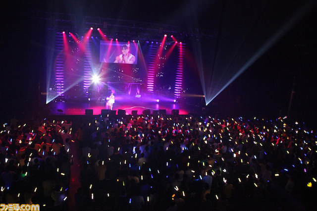 イベント開始前には神代フラウと橋田至による前説映像が流され、会場のファンを楽しませつつ、注意事項が伝えられるといよいよライブスタート。トップバッターとして登場したのは、いとうかなこさんと志倉千代丸氏。Xbox 360用ソフト『シュタインズ・ゲート』オープニング曲『スカイクラッドの観測者』で会場を温めると、続いて吉田仁美さんが登場。『ドキドキ! プリキュア』のエンディング曲『この空の向こう』、『ラブリンク』の2曲をかわいらしい振り付けとともに歌い上げた。“アニソン界の黒船”HIMEKAさんはプレイステーション Vita&プレイステーション3用ソフト『ローゼンメイデン ヴェヘゼルン ジー ヴェルト アップ』エンディング曲『カギリアルユメ』、プレイステーション3用ソフト『解放少女 SIN』エンディングテーマ『TSU-BA-SA』を熱唱。声優の藏合紗恵子さんと佐土原かおりさんのユニット“TWO-FORMULA”のふたりは、疾走感溢れる楽曲『太陽と月のCROSS』(テレビアニメ『俺の脳内選択肢が、学園ラブコメを全力で邪魔している』エンディング曲)と『Shangri-La』の2曲を披露した。