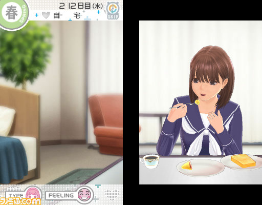 本作には、現実時間と連動してさまざまなイベントが楽しめる“リアルタイムモード”と、現実時間とは関係なくゲーム内の時間を進められる“スキップモード”という、ふたつのモードがある。リアルタイムモードのほうがカノジョとの親密度が上がりやすく、専用のイベントも楽しめるというメリットがあるのだが、今回は試遊ということでスキップモードでプレイすることに(ちなみに、このふたつのモードはプレイ中いつでも切替可能)。