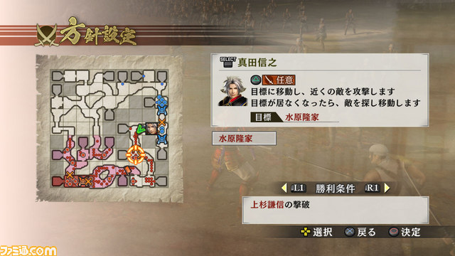 本作では、戦場に居る2人のキャラをリアルタイムに切り替えながら、勝利を目指していく。操作していないキャラクターに対しては、細かな方針を設定することも可能だ。