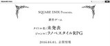ゲーム ニュース スクウェア・エニックスが新作タイトルのティザーサイトを公開 25人以上の豪華声優陣が参加することも明らかに スクウェア・エニックスが新作タイトルのティザーサイトを公開 25人以上の豪華声優陣が参加することも明らかに スクウェア・エニックスが、新作タイトルのティザーサイトを公開した。 2014-04-01 19:05:00 記事にコメントする 記事のコメント ●エイプリルフールネタではありません! スクウェア・エニックスが新作タイトルのティザーサイトを公開した。タイトル名およびプラットフォームは未定、ジャンルはラノベスタイルRPG。ティザーサイトでは、25人以上のキャスト陣の名前も公開されている。近日、最新情報が公開されるとのことなので、続報を待つべし。 (C) 2014 SQUARE ENIX CO., LTD. All Rights Reserved. スクウェア・エニックス 新作タイトルのティザーサイト