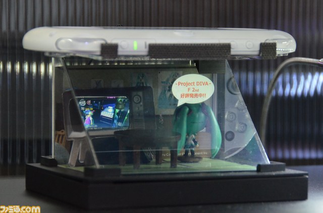 ソニー・コンピュータエンタテインメントジャパンアジアブースでは、こちらの記事で紹介しているとおり、最新の技術デモが紹介されている。その技術デモのひとつ、超透過型電脳箱“VitaHoloPoP(仮)”に、『初音ミク -プロジェクト ディーヴァ- F 2nd』の映像が使われているのだ。
