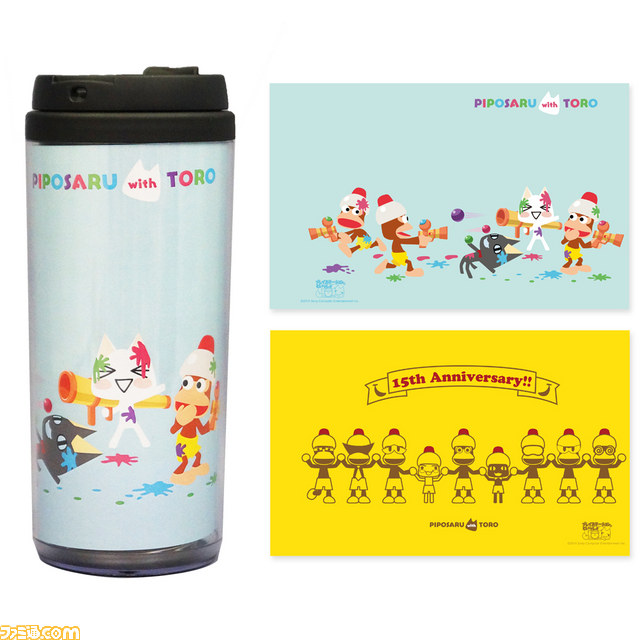 SCEワールドワイド・スタジオ JAPANスタジオの森田涼子氏、浅野しおり氏による、「サルゲッチュ」×「どこでもいっしょ」コラボイラストを掛け換えジャケットポスターにしたタンブラーです。