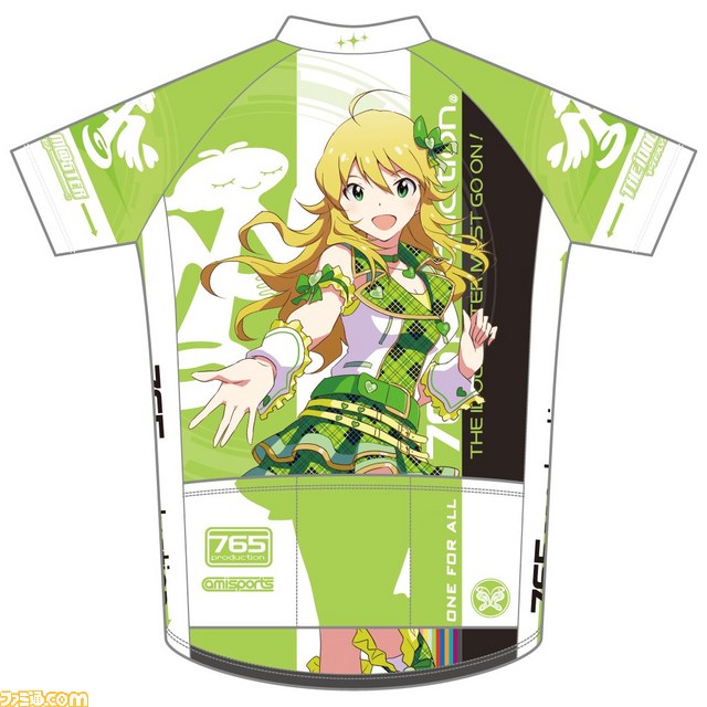 『アイドルマスター』のサイクルジャージシリーズに、『アイドルマスター ワンフォーオール』ver.が登場です! 背面には765プロダクションのアイドルたちを大胆に配置し、各イメージカラーで仕上げました。吸汗速乾性に優れた生地を使用した本格的なサイクルジャージとして制作されておりますので、ロードレースやロングライドなどにご使用いただけます。また、ライブやイベントに着ていけば目立つこと間違いなし。