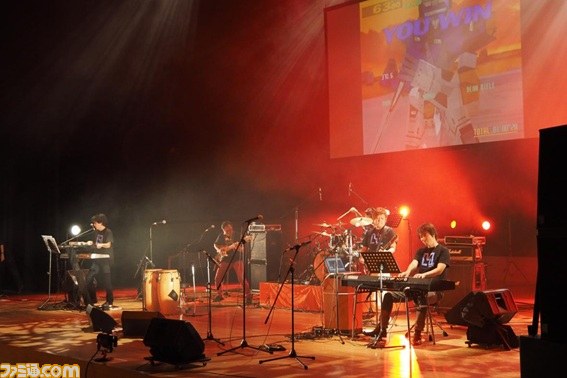 トップバッターとして登場したのは、ゲーム音楽プロダクション・ノイジークロークの社員で結成されたバンド“TEKARU”。坂本英城氏(オルガン)、加藤浩義氏(シンセサイザー)、いとうけいすけ氏(ベース)、川越康弘氏(ドラム)の4人に、サポートメンバーとして『戦国無双』シリーズや『討鬼伝』のサウンドディレクターを務めた中條謙自氏(ギター)を加えての編成だ。