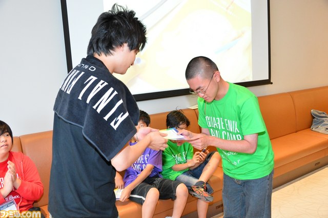 認定式では、各グループのメンターが受講生ひとりひとりに手書きのコメントを記した認定状を授与。全受講生を代表して、最初に認定状を受け取ったゆうかちゃんに感想をいただいた。「このキャンプには、『スクエニに行ける!』というミーハーな動機で来てしまいました(笑)。これまで、ゲームはプログラムを独学で身につけたりして、ひとりで作ってきましたが、ここでは方法論や手順など、いろいろなものを教わることができました。それに、生の開発現場も見せてもらえてうれしかったです」と、突然の取材にもハキハキと淀みなく対応して、取材した記者のほうがしどろもどろになってしまうほど。最後は、キャンプと同時進行で編集されていた、2日間をまとめたVTRが流され、キャンプは閉幕した。
