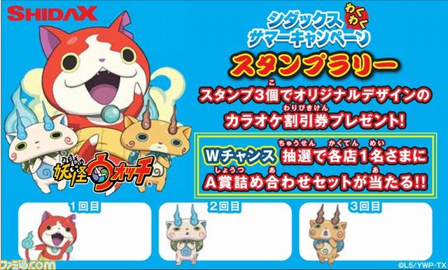 シダックス・コミュニティーは、2014年7月7日から9月7日まで、全国のレストランカラオケ・シダックス289店舗で、“レストランカラオケ・シダックス×妖怪ウォッチ わくわくサマーキャンペーン”を実施する。