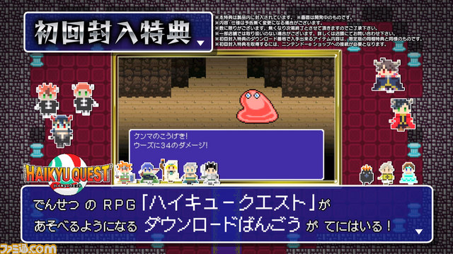CMでは6人の主人公による6つの物語が展開されることが紹介されているほか、初回封入特典”ハイキュークエスト”が昔懐かしのファミコンチックな音楽とともに紹介されている。