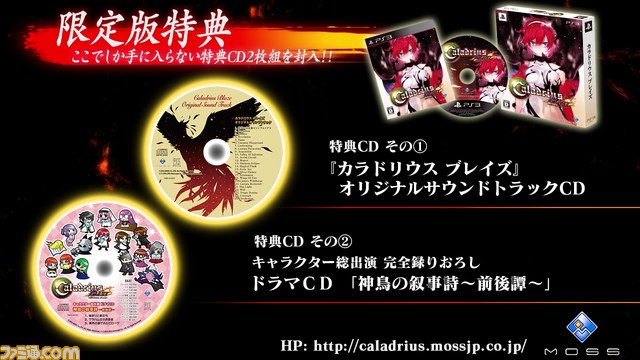 モスは、2014年8月28日発売予定のプレイステーション3用ソフト『カラドリウス ブレイズ』の公式サイトで、新たに追加されるプレイヤーキャラクターおよびゲームのオープニングムービーを公開した。以下、リリースより抜粋。