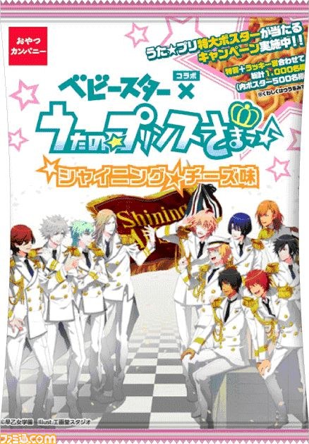ブロッコリーが展開する女性向けコンテンツ『うたの☆プリンスさまっ♪』が、おやつカンパニーの主力ブランドである“ベビースター”とコラボ! “ベビースター×うたの☆プリンスさまっ♪(シャイニングチーズ味)”が、2014年7月21日より企画限定品として全国で発売される。