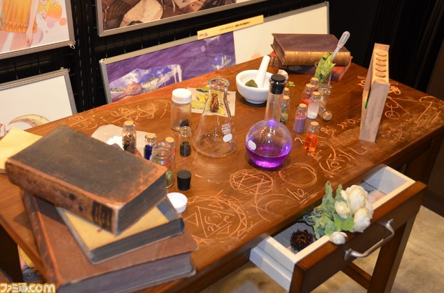 この催しは、ガストの20周年を記念して行われているもの。ビジュアル展示のほか、テレビアニメ『エスカ&ロジーのアトリエ』絵コンテの展示や、グッズ販売も行われている。『アトリエ』シリーズの雰囲気を再現した机や小物を使って撮影を楽しんだり、プレイステーション3用ソフト『シャリーのアトリエ ~黄昏の海の錬金術士~』(2014年7月17日発売予定)を試遊したりすることも可能だ。