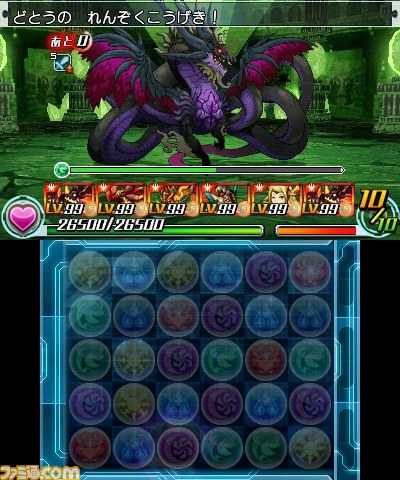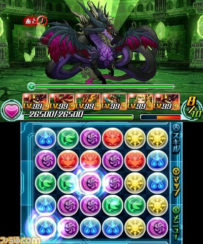 ガンホー・オンライン・エンターテイメントより発売中のニンテンドー3DS用ソフト『パズドラZ』。本日2014年8月22日(金)より、月替わりダンジョンとして、裏天空龍“裏樹天龍・ホウライ”出現ダンジョン絵馬の再配信が開始された。