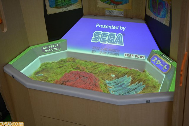 まずは、セガのキッズ向けの『え~でる すなば』を紹介しよう。これは誰しもが子どものころに遊んだことがあるであろう“砂場遊び”が体験できる筐体だ。