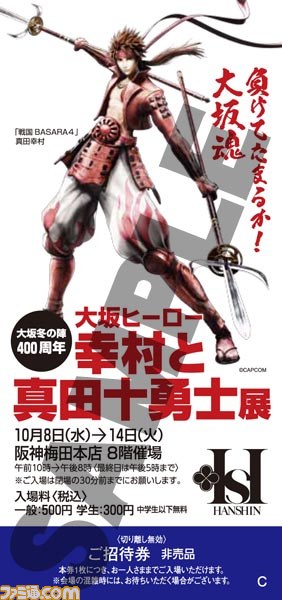 2014年10月8日~14日に大阪・阪神梅田本店にて開催される“負けてたまるか!大坂魂 大坂ヒーロー幸村と真田十勇士展”に、『戦国BASARA4』の真田幸村が登場することが明らかとなった。