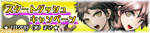サービス開始にともない、本日1月8日から1月20日まで、“スタートダッシュキャンペーン”が開催。ログインすると1日3個“モノクマメダル”がプレゼントされるキャンペーンを始め、4つのキャンペーンが実施される。この機会にぜひプレイしよう。