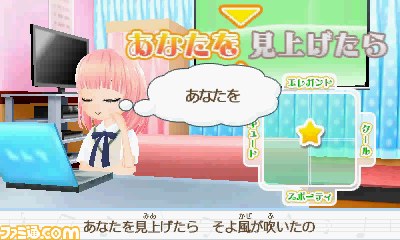 『ドーリィ♪カノン』はイケメン男子を美少女アイドルとしてプロデュースする、雑誌『ちゃお』(小学館)の人気少女まんがです。ニンテンドー3DS 専用ソフト『ドーリィ♪カノン ドキドキ♪トキメキ♪ ヒミツの音楽活動スタートでぇ~す!!』では、学園のアイドル奏四くんを謎の美少女“カノン”として女装させてプロデュースすることができます。自分が作詞した通りにカノン(声:高橋未奈美さん)が歌い、さらに誰でも簡単に本格的なカメラワークの動画を作ることができます。