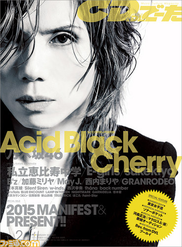 1月14日発売の『CD&DLでーた』2月号では、ニューアルバム発表目前、Acid Black Cherryを1stカバーに迎え、たっぷりの写真とロングインタビューをお届けします。