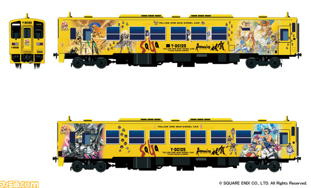 その主な取り組みとして、3月21日より、JR九州(佐賀駅~西唐津駅、西唐津駅~伊万里駅)にて、『ロマンシング佐賀』ラッピング列車の運行を開始いたします。ラッピング列車は、2輌運行する予定で、「サガ」シリーズのイラストやドット絵でデザインされた、ここでしか乗れない列車です。