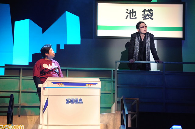 ゲーセンの物語とあって、壇上に2組計4台の筐体“アストロシティ”に収まった『バーチャファイター』、『バーチャファイター2』や、ゲームセンターでおなじみの“セブンティーンアイス”自販機を設置して、1994年~1995年当時の“ゲームスポット21”が再現されていた。当時のゲームポスターや店舗のカウンターなど、細かい部分ではあるが制作陣のコダワリが伝わるセットには思わずニンマリ。