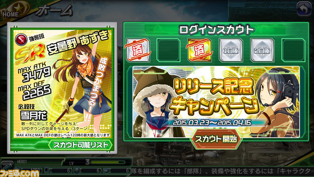 ログインで必ずスカウト。SRが手に入るかも!?