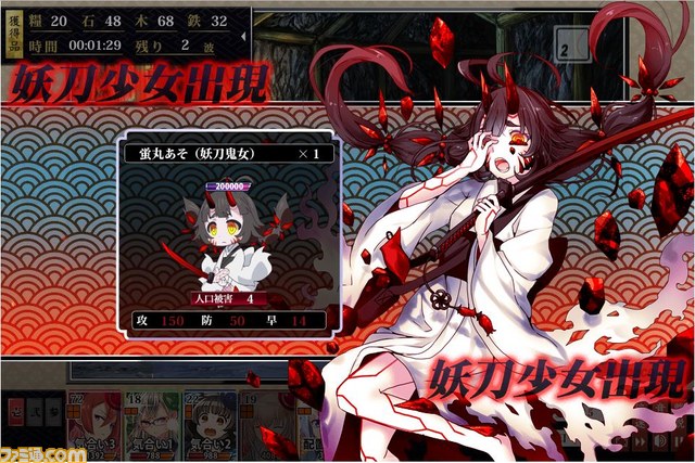 本イベントでは、捕縛することができれば布陣に組み込むことも可能な“妖刀鬼女(蛍丸あそ)”のほか、青行燈、輪入道といった独自の生態を持つ憑喪(つくも)が出現。イベントで登場するボスキャラクターを討伐することにより、“魂鋼(優)”など良質な魂鋼もドロップする。