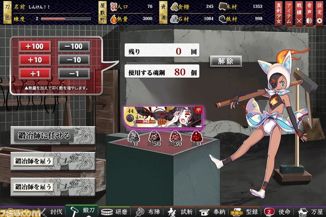 捕縛した『妖刀鬼女』は“鍛刀”で鍛え直すことで、正気に戻すことができる。強力だが味方を襲うこともある『妖刀鬼女』状態から通常状態へ戻せば、仲間としてこの上ない味方になること間違いなし!