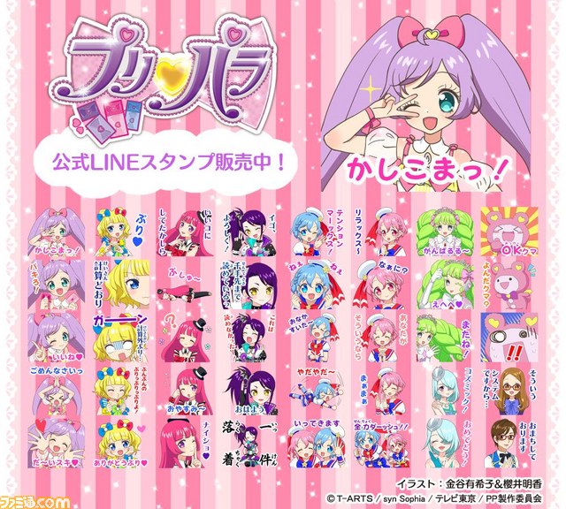 アニメ、女の子向けアミューズメントゲームで展開中の『プリパラ』の公式LINEスタンプが、LINEが運営するコミュニケーションアプリ“LINE(ライン)”にて配信中。価格は1セット120円[税込]。