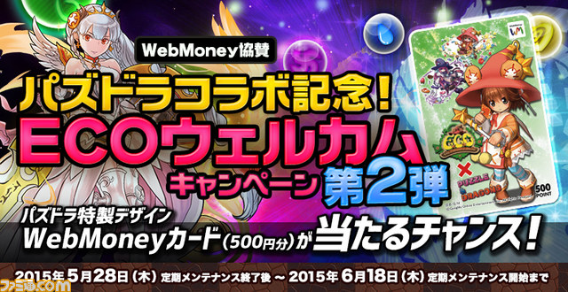 また、コラボレーションを記念して、「WebMoney協賛 パズドラコラボ記念!ECOウェルカムキャンペーン第二弾」を実施いたします。