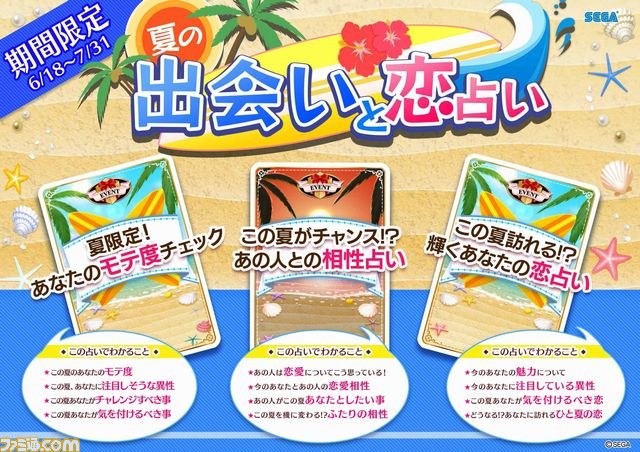 “夏限定!あなたのモテ度チェック”など3つの占いが登場