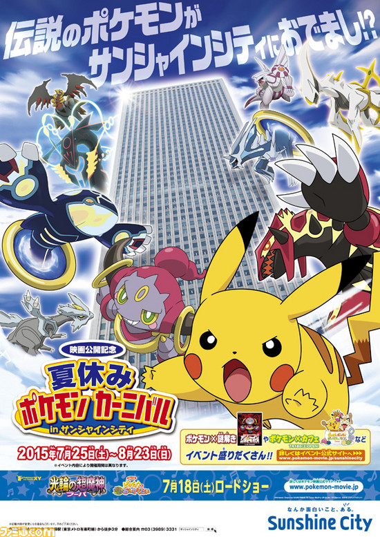 2015年7月18日(土)から公開のポケモン映画『ポケモン・ザ・ムービーXY「光輪(リング)の超魔神 フーパ」同時上映「ピカチュウとポケモンおんがくたい」』と、東京・池袋のサンシャインシティがタイアップしたイベント“夏休みポケモンカーニバル in サンシャインシティ”が、7月25日(土)~8月23日(日) の期間、実施される。
